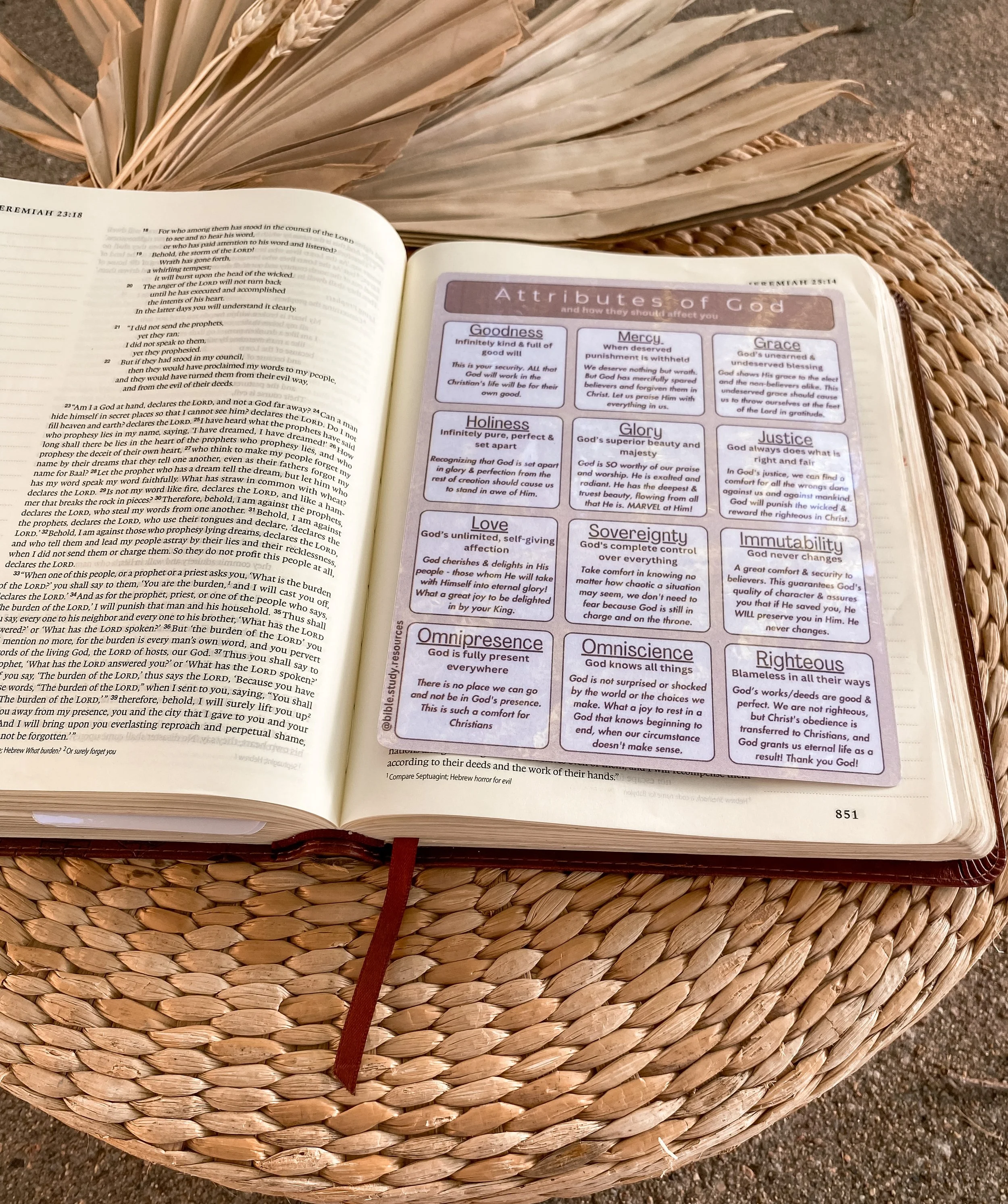 Simple Bible Study Workbook $9.00 Romans Small Group Bible Study Guide $20.00 Bible Study Bookmarks $7.00 *BULK* order of Bible Study Bookmarks from $35.00 Bible Journaling Sticker $6.00 Attributes of God Sheet $7.00 King and Kingdom Theme Sheet $7.00